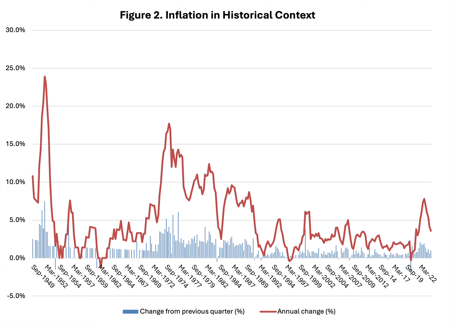 Is it even the highest inflation has been even in my lifetime (just shy of 40 years)? No. Throughout most of the Hawke, Keating, and Howard years, inflation fluctuated between 3-5%.